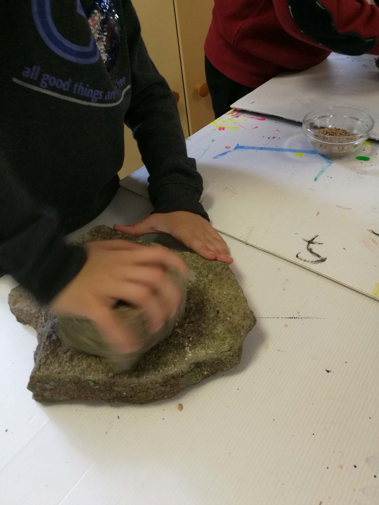 In einem Quizz rund ums Getreide können sie ihr Wissen einsetzen, um Punkte zu sammeln, für die das Schullandheim ein nachhaltiges Projekt bei „atmosfair“ fördert: d.h. Spaß haben und den Schullandheimbesuch CO2 neutral gestalten. Anschließend wird Mehl wie bei den Slawen, Römern oder auch Kelten gemahlen.